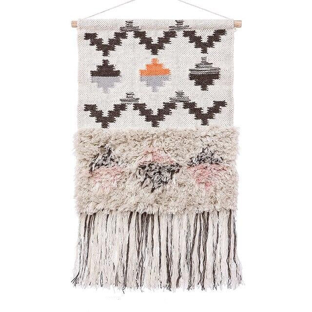 Przenieś swoje wnętrze w podróż do krainy wzorów i tekstur dzięki naszemu wyjątkowemu gobelinowi ściennemu. Ten gobelin na ścianę w stylu orientalnym to prawdziwa perełka, która łączy w sobie tradycyjne rzemiosło z nowoczesnym designem. Jego górna część, wykonana z płasko tkanej tkaniny, zachwyca intrygującymi, geometrycznymi motywami w odcieniach brązu, szarości i pomarańczy na jasnym tle. To idealny sposób, aby dodać przestrzeni unikalnego charakteru i artystycznego akcentu, który z pewnością przyciągnie wzrok każdego gościa.