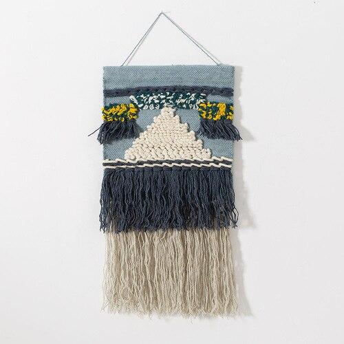 Ta makata na ścianę w stylu marokańskim to prawdziwa uczta dla zmysłów. Wykonana z wysokiej jakości przędzy, zachwyca swoją grubą, splotową teksturą, która zaprasza do dotyku. Główny motyw – trójkątny wzór w kolorze kremowym – jest starannie wypleciony, dodając głębi i trójwymiarowości. Długie frędzle w odcieniach granatu i beżu miękko spływają w dół, tworząc dynamiczny element, który porusza się delikatnie z każdym powiewem powietrza. To nie tylko ozdoba, ale element, który ociepli akustykę pomieszczenia i doda mu przytulności. Wyobraź sobie, jak pięknie będzie wyglądać zawieszona nad łóżkiem, kanapą czy w przedpokoju, stając się centralnym punktem Twojej aranżacji i opowiadając historię o rzemiośle i estetyce.
