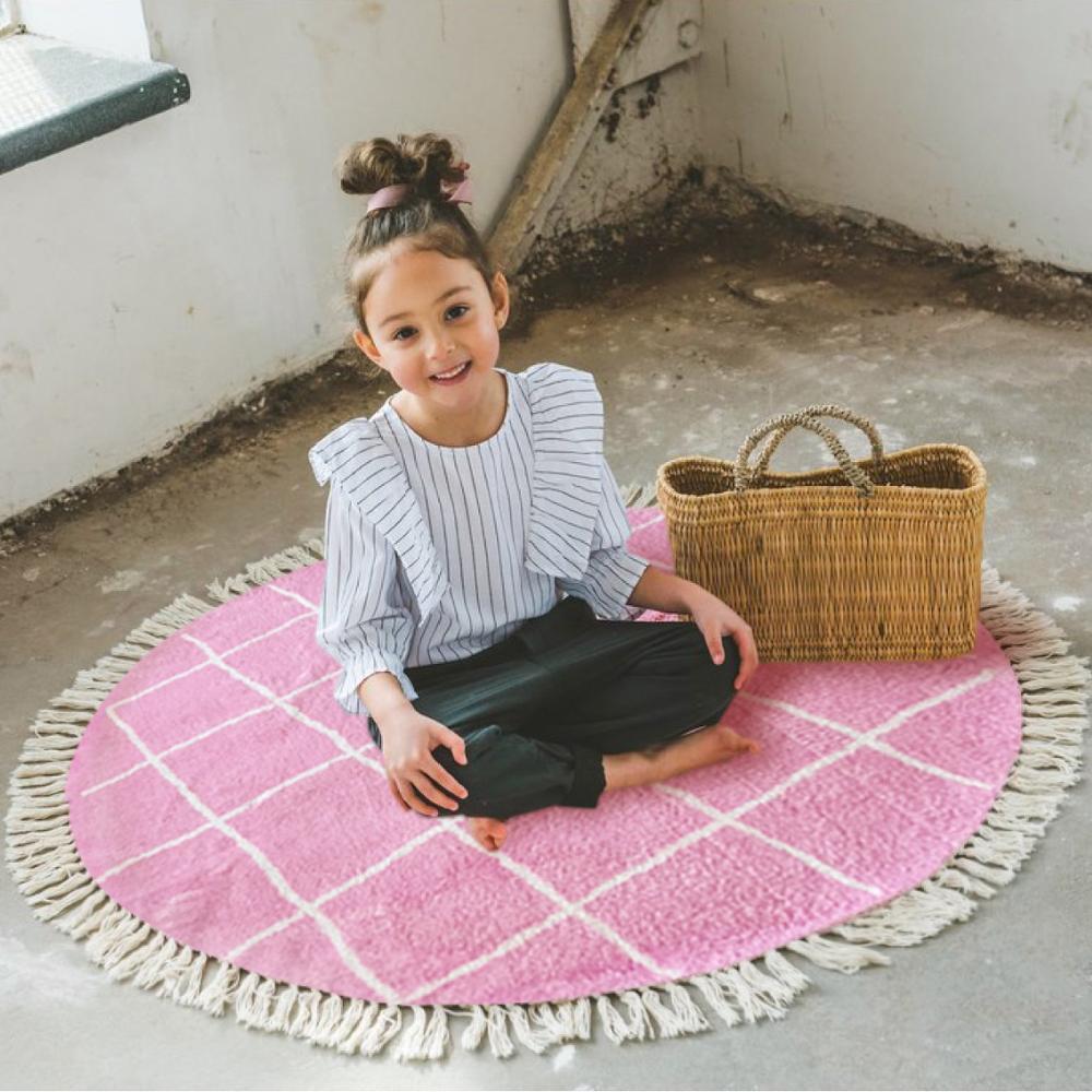 Główne cechy Okrągłego różowego dywanu z frędzlami: