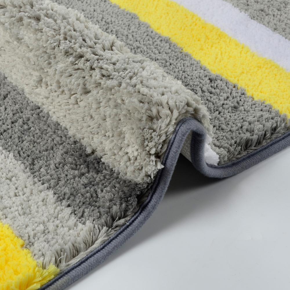 Uczyń swoją łazienkę piękniejszą i bardziej komfortową z żółto-szarym dywanikiem łazienkowym w paski!